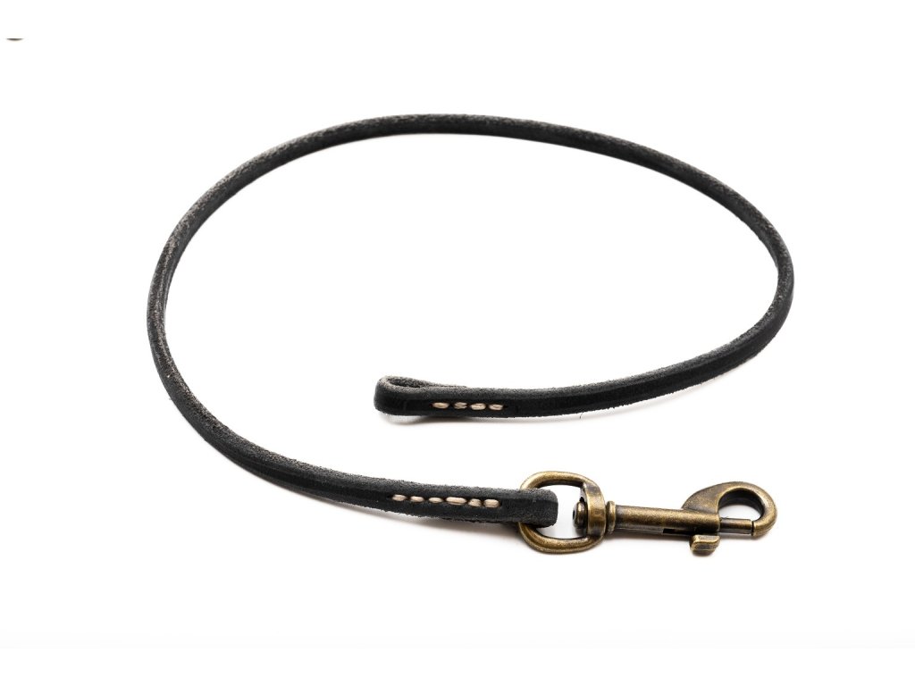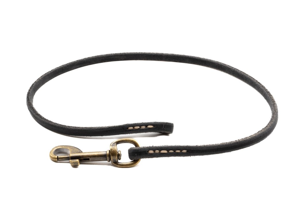 Kožené vodítko bez poutka, černá kůže 7mm, kování staromosaz